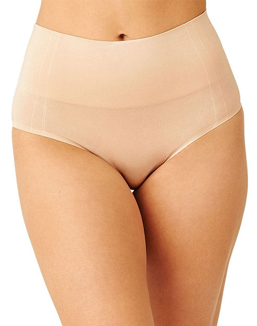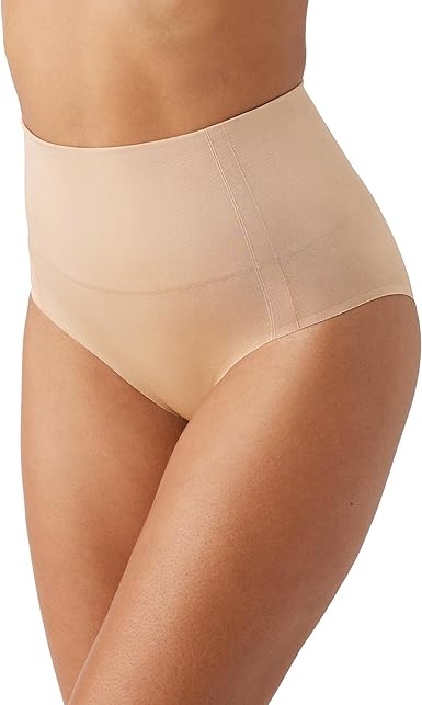 The Wacoal Smooth Series™ Shaping Brief gently flattens your tummy and virtually disappears under clothes. When you want a sleek look, this brief is the perfect choice. It helps shape your tummy and has bonded edges to prevent panty lines under clothing. Made from nylon and spandex with a cotton gusset. The wide waistband targets your tummy with a dual-layer panel.
