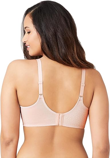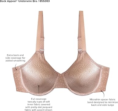Perfect back and side smoothing control with everyday comfort from Wacoal-America. Wacoal's Back Appeal Underwire Bra is back and side smoothing. It is designed to give you full coverage and a wider band for extra back coverage. These features make this bra truly comfortable to wear. The unique fabric in the band is concealed by delicate dot jacquard lace and is constructed to smooth your back and sides. This bra will give you a polished look. You'll love it!