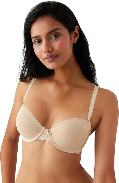 This stay-put strapless bra featuring a soft brushed lace band, foam cups, and convertible straps is a lingerie drawer must-have.