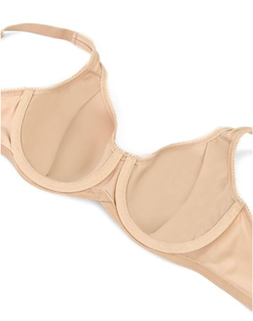 Wacoal's Basic Beauty T-Shirt Bra is designed for the full figure woman. This bra delivers full coverage and side smoothing with spacer cups that keep you cool, and to give you a seamless look under clothes without padding. V-back and close set strap design help keep the straps from slipping down your shoulders. Seamless sides and back help smooth you under clothes.