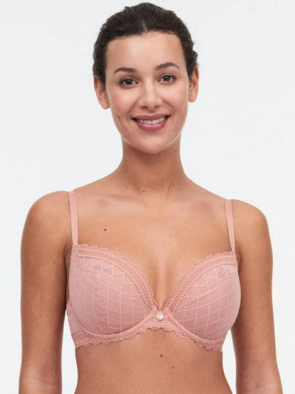 With the same fit as fan favorite #3641 C Chic Sexy Plunge, this classic plunge allows for a sexy, low cut neckline without sacrificing lift or containment. The base of the cups are reinforced for added support and centering while the top of the cup transitions to a transparent look for the effect of less coverage.